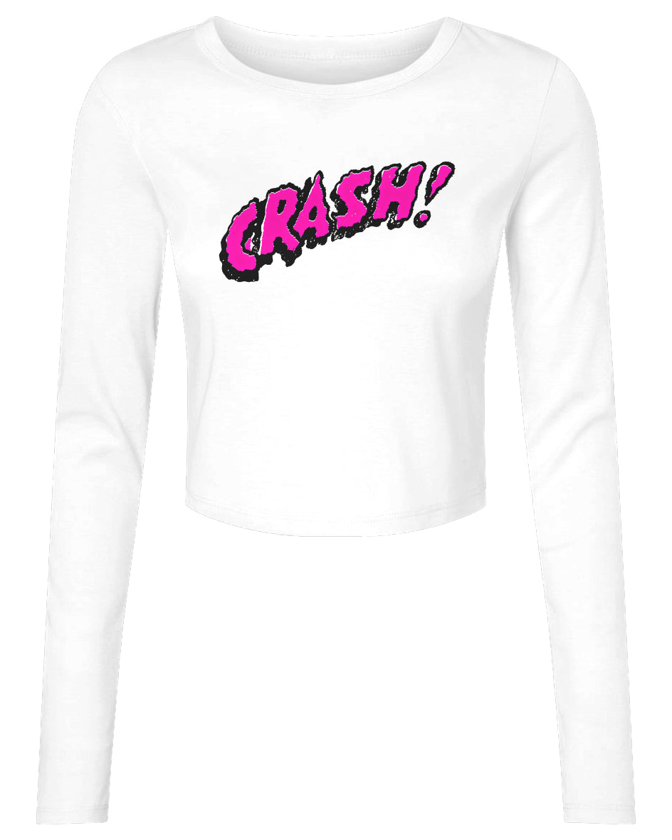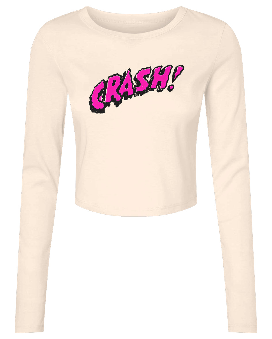 Make an entrance with our eye-catching CRASH! graphic splashed across the softest long sleeve baby tee you'll ever own. This isn't your average layering piece—it's a statement.
