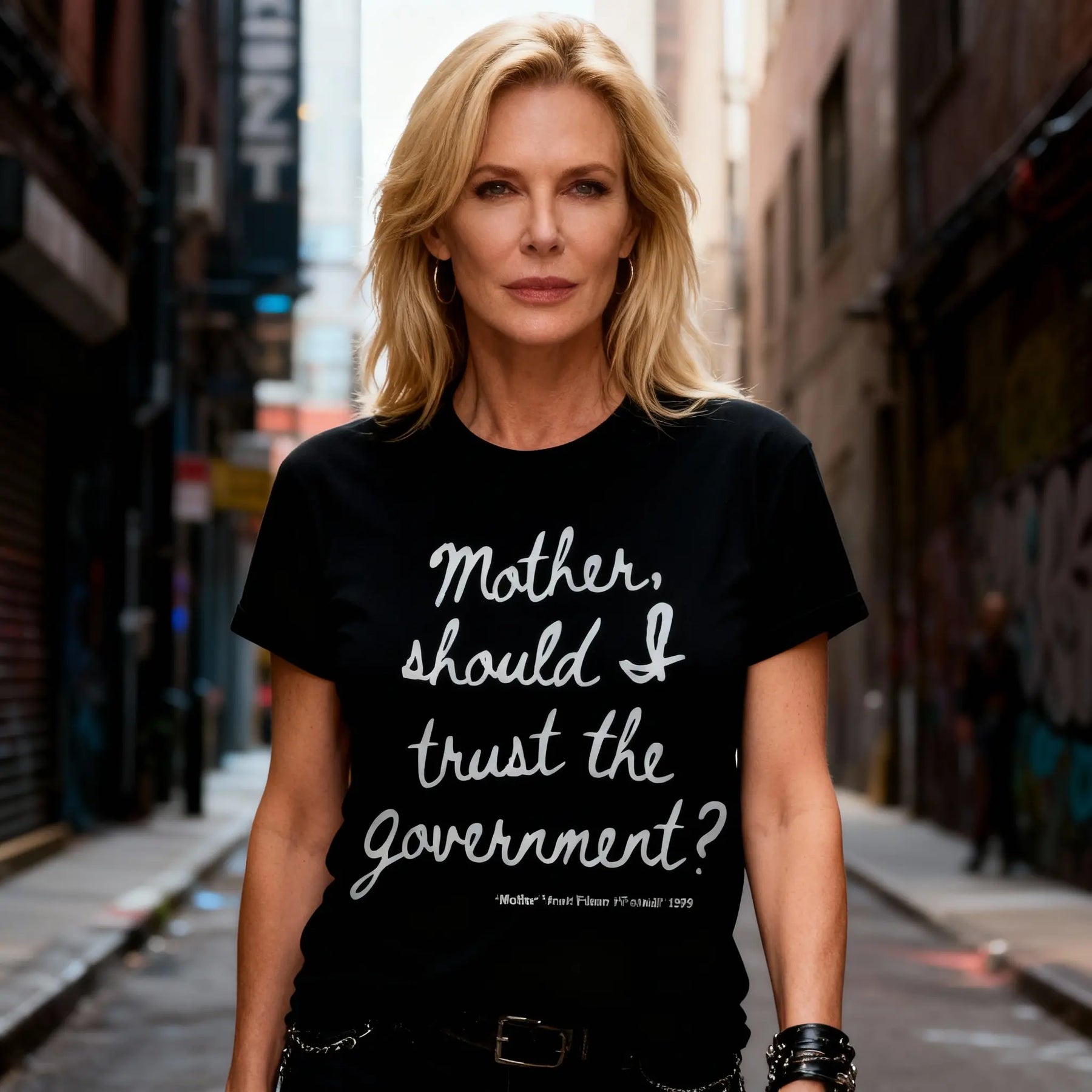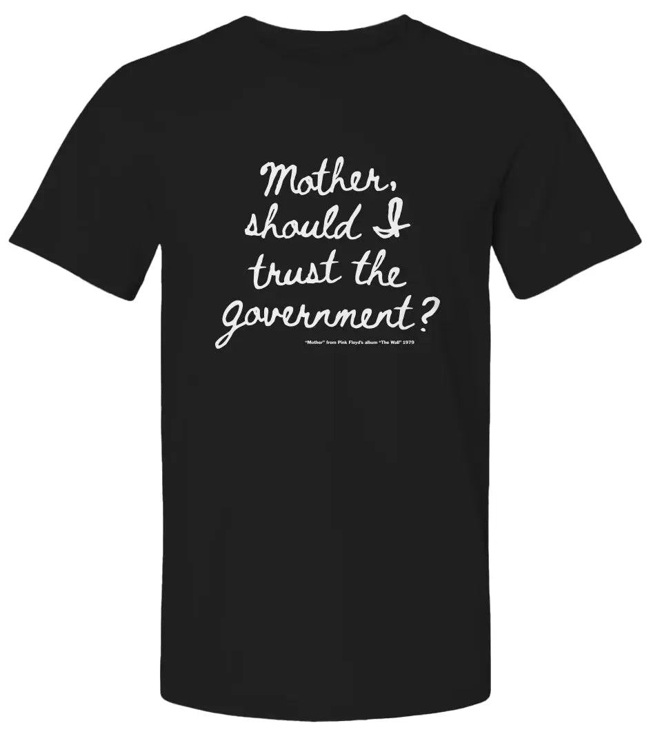 "Mother, should I trust the government?" is a famous lyric from Pink Floyd's song "Mother" (from the album The Wall) expressing childlike anxiety and skepticism about authority, reflecting themes of control, fear, and the need for protection, often interpreted as a critique of government overreach and propaganda, resonating with people questioning power structures in real life. While the song is fictional, it taps into real concerns about government transparency and accountability, leading to its use on merchandise and as a symbol of dissent.