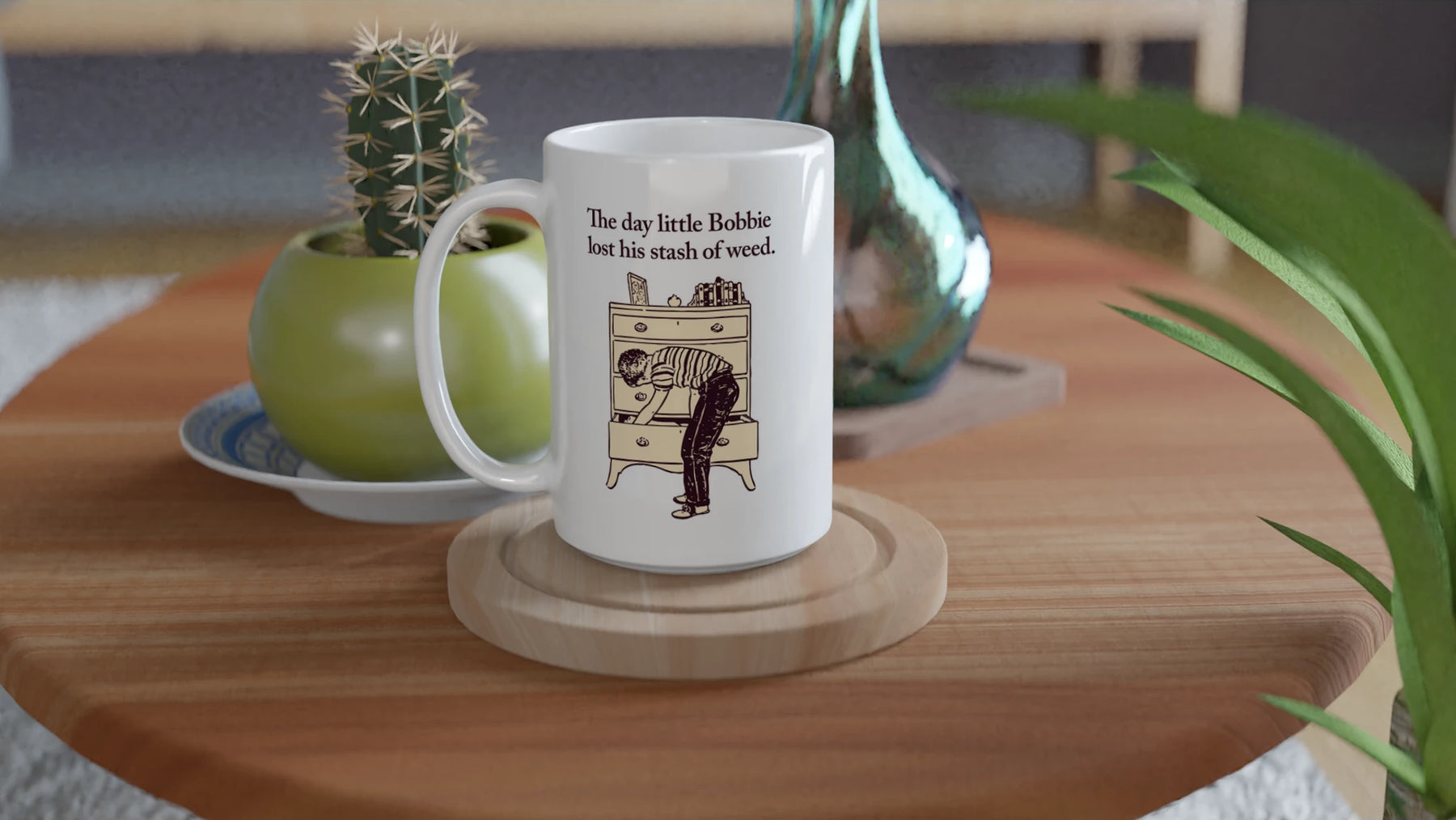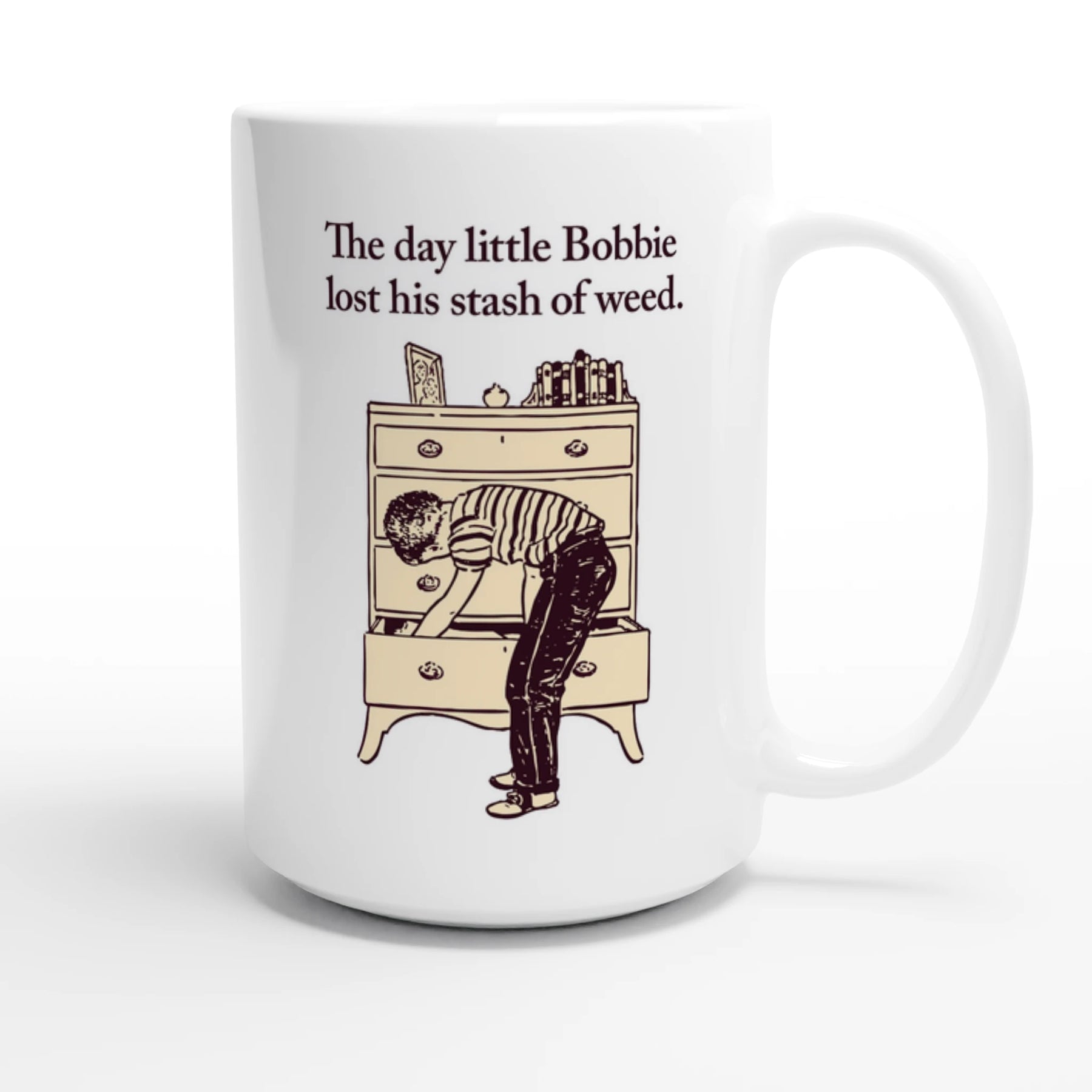 "The Day Little Bobbie Lost His Stash of Weed" White 15oz Ceramic Mug