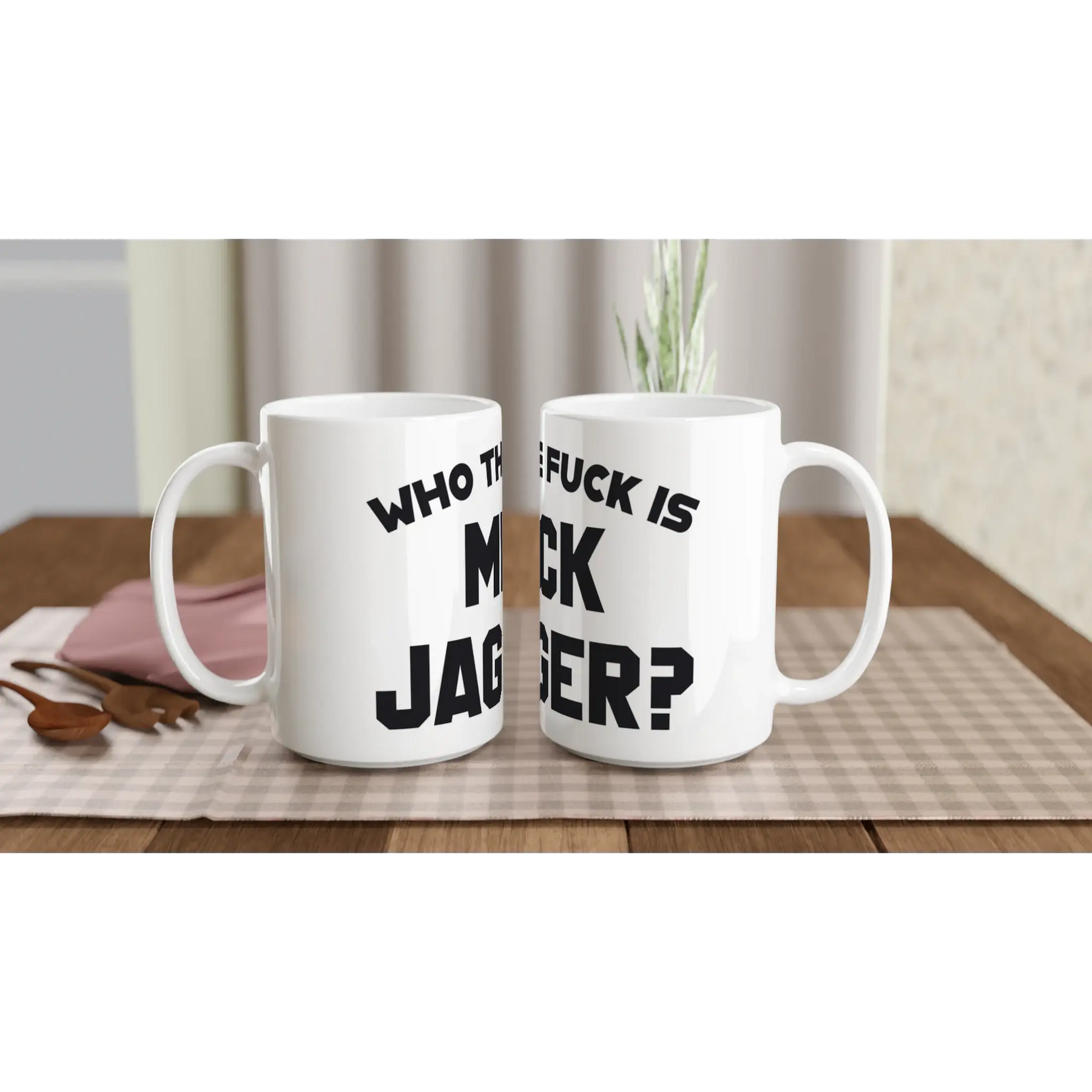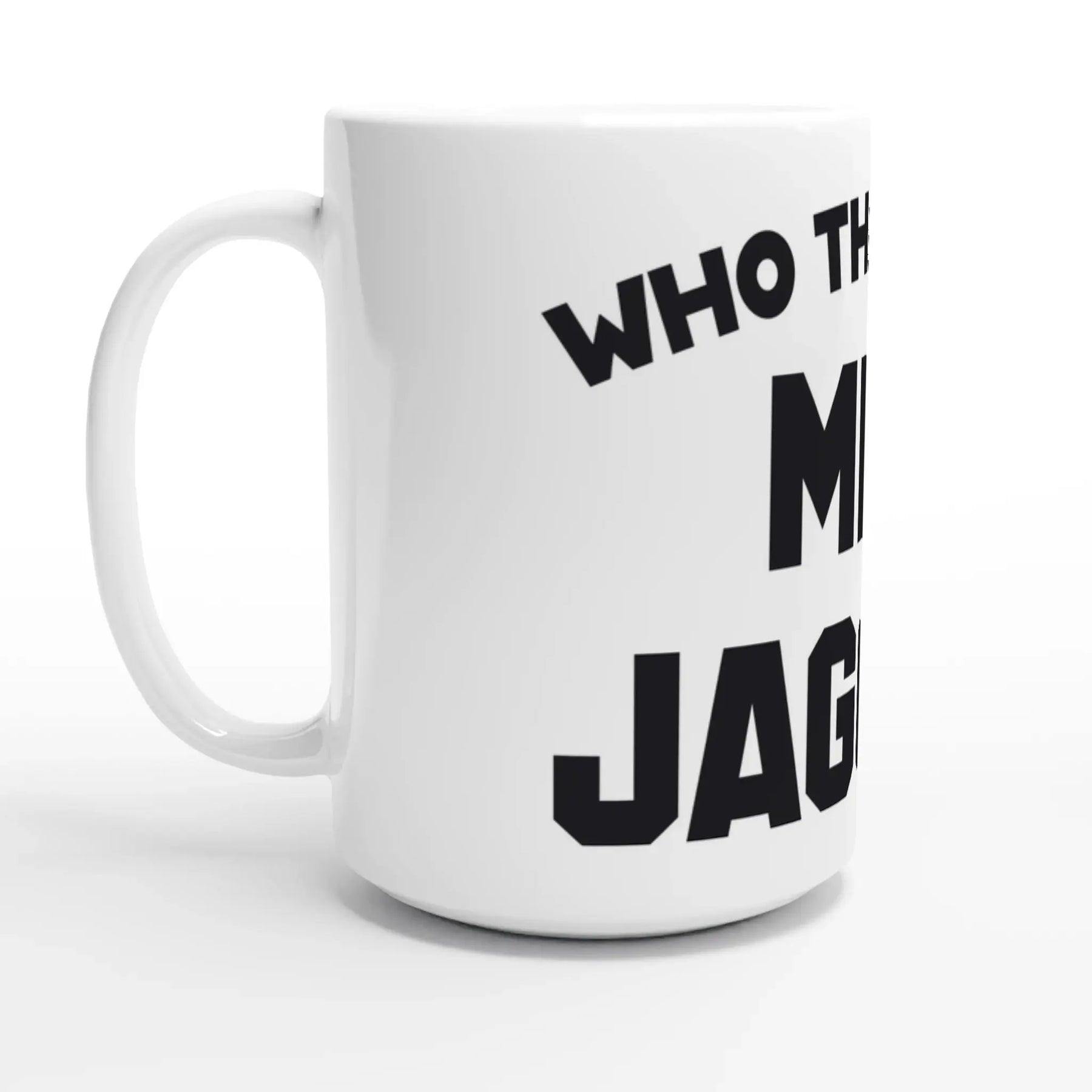 Make a bold statement with this provocative "Who The F*ck is Mick Jagger?" white 15oz ceramic mug. This irreverent design references the legendary moment when punk rock collided with rock royalty, capturing the rebellious spirit of a generation that questioned everything—even the biggest rock stars.